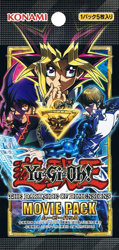 Com Yugi e Kaiba, os Duelistas originais em cena, nós com certeza veremos o Mago Negro e o Dragão Brancos de Olhos Azuis em ação. Justamente pelo Dragão Branco de Olhos Azuis ser a estrela da coleção Conquistas Brilhantes de Maio de 2016, e o Mago Negro ser o destaque da coleção A Ilusão Negra de Agosto, a Konami Digital Entertainment, Inc realizará o lançamento antecipado do Pacote do Filme – Yu-Gi-Oh! The Dark Side of Dimensions em relação a data prevista para a estreia do filme.